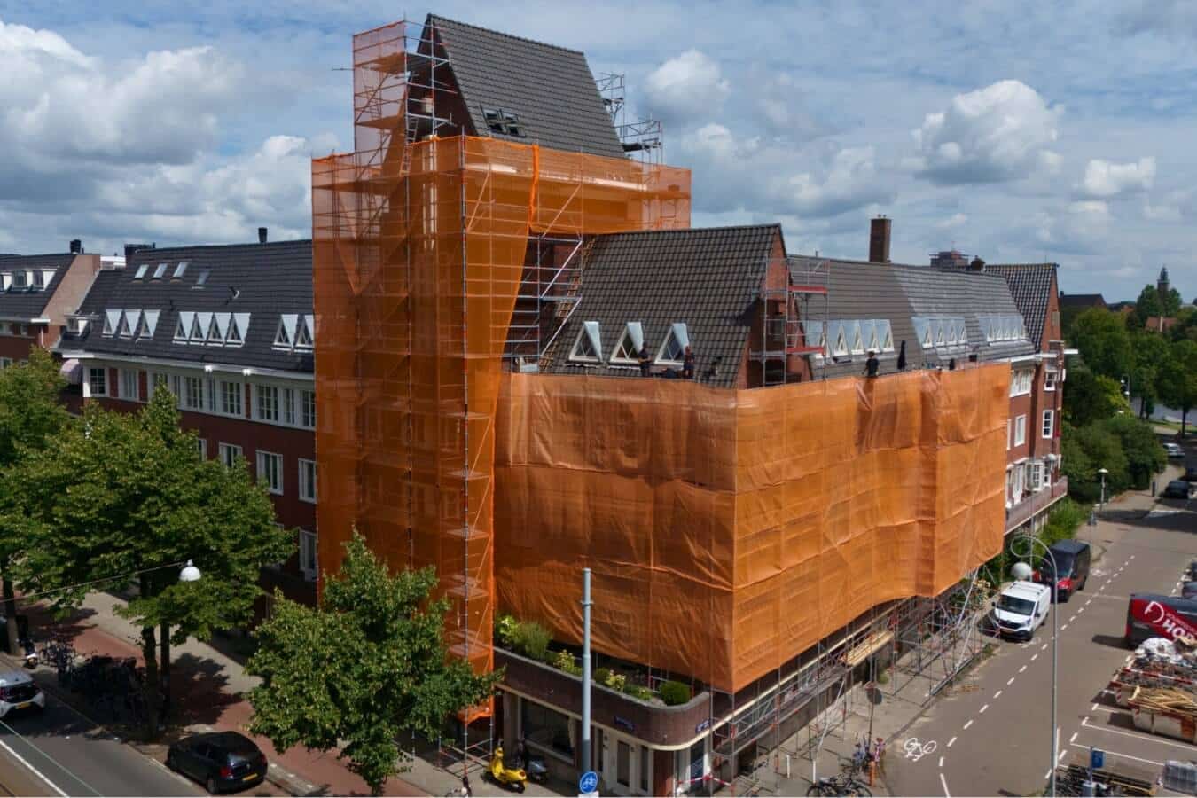 Voor gevelschilderwerk, onderhoud van hoge muren, schoonmaak van buitengevels, en renovaties waarbij langdurig op hoogte gewerkt moet worden.